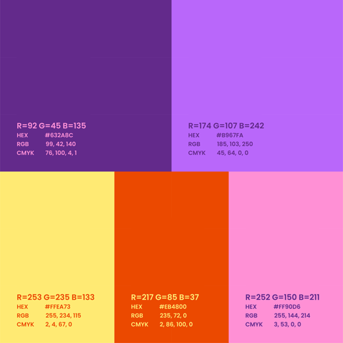 The typography was selected to add character and complement the visual style. A rich purple palette, traditionally associated with royalty, is balanced with bright accent colours that create contrast and visual impact. Custom patterns and icons were created to add an additional layer of consistency and visual detail, while helping to strengthen and express the brand’s personality.